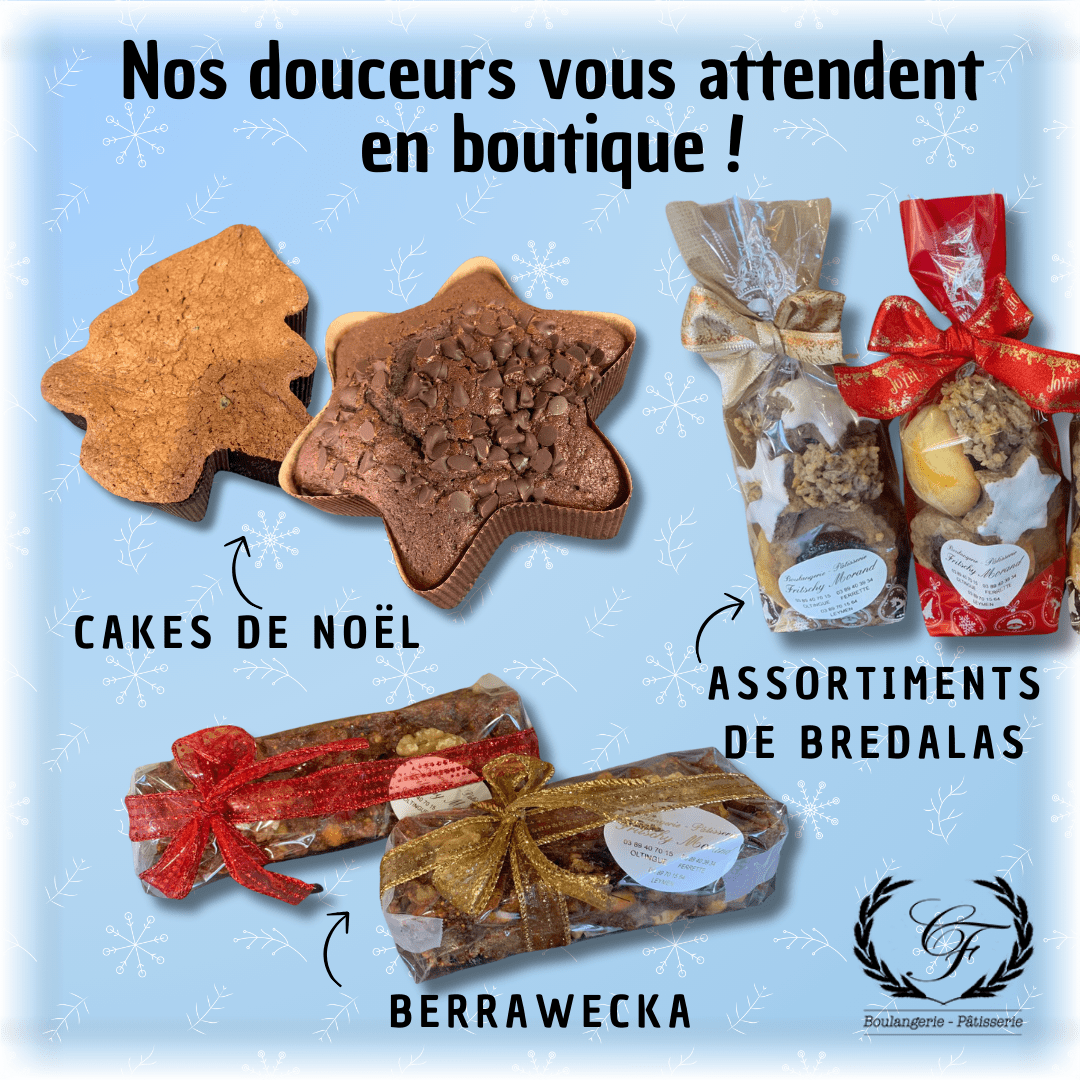 Pour vous faire passer de Délicieuses fêtes de fin d’année 2025, vous trouverez ci-dessous nos spécialités.